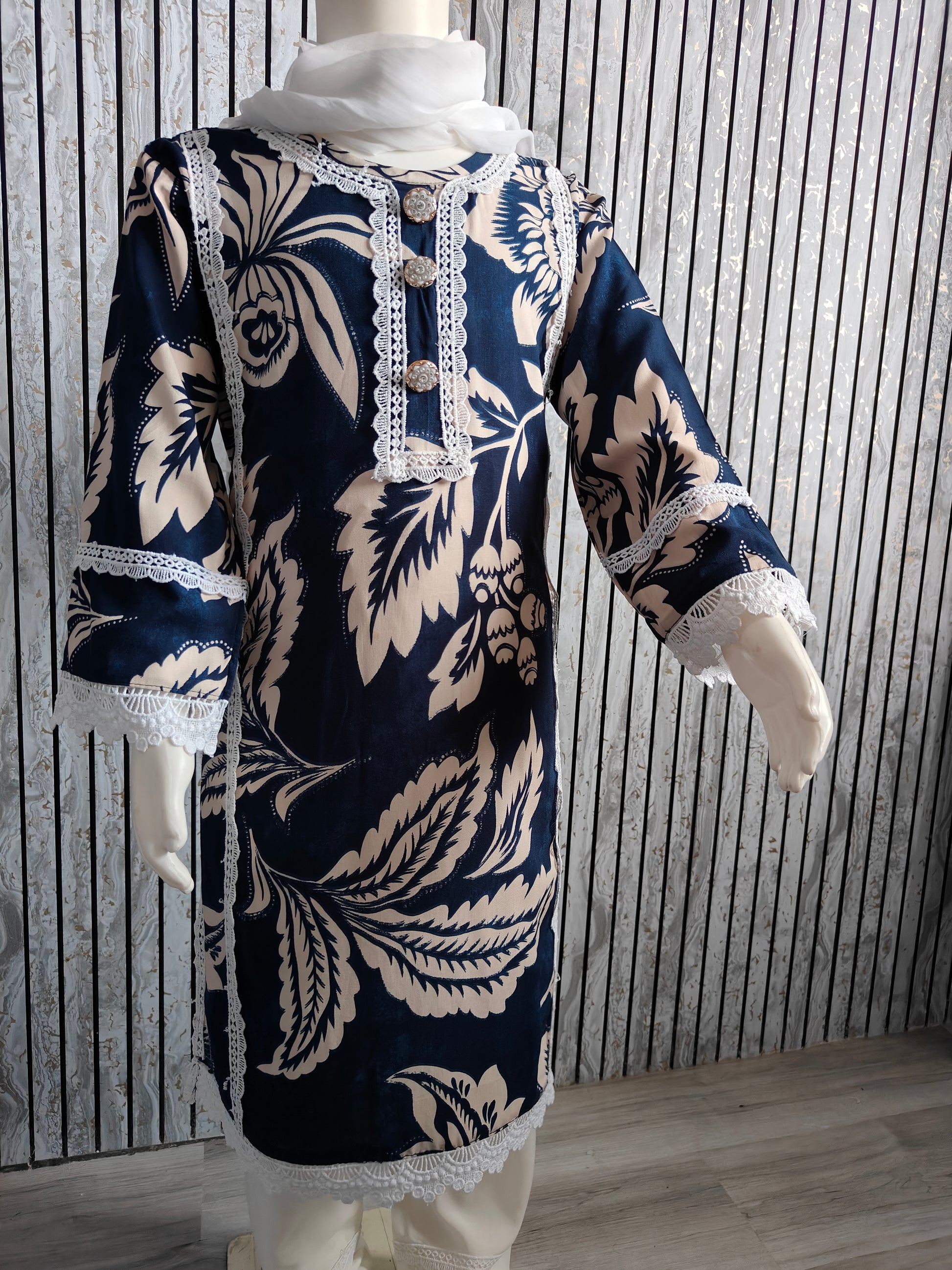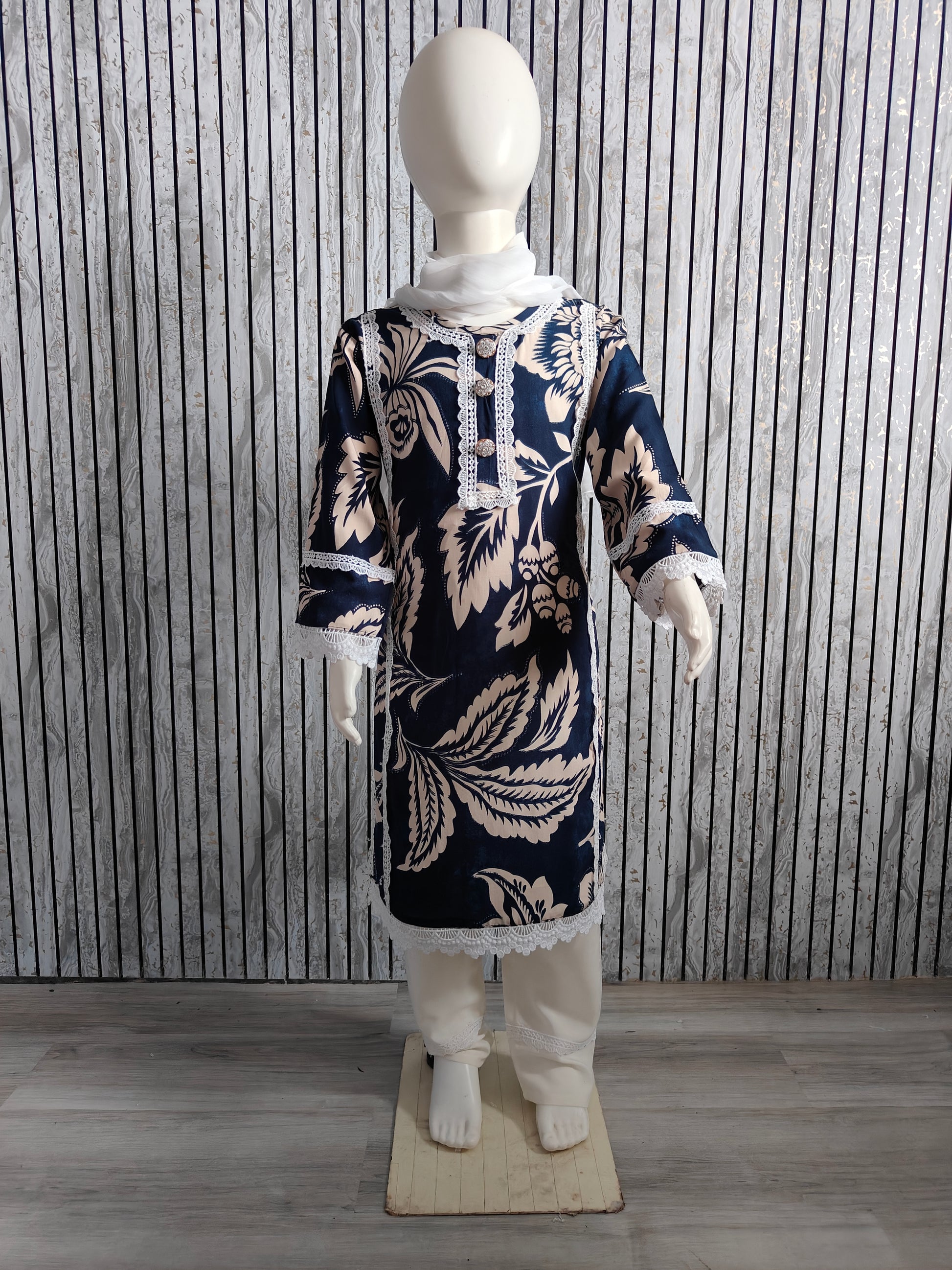 Discover timeless elegance with this Girls Lace Work Dress Set with Dupatta, expertly crafted for style and comfort, now available online for girls aged 4 to 13 years in sizes 24 to 34. Featuring intricate lace detailing along the neckline, sleeves, and borders, this set blends traditional charm with contemporary flair, making it a perfect festive outfit for any occasion. The soft, breathable fabric ensures all-day comfort, while the coordinated dupatta adds a beautiful, elegant touch to your child’s ensemble.