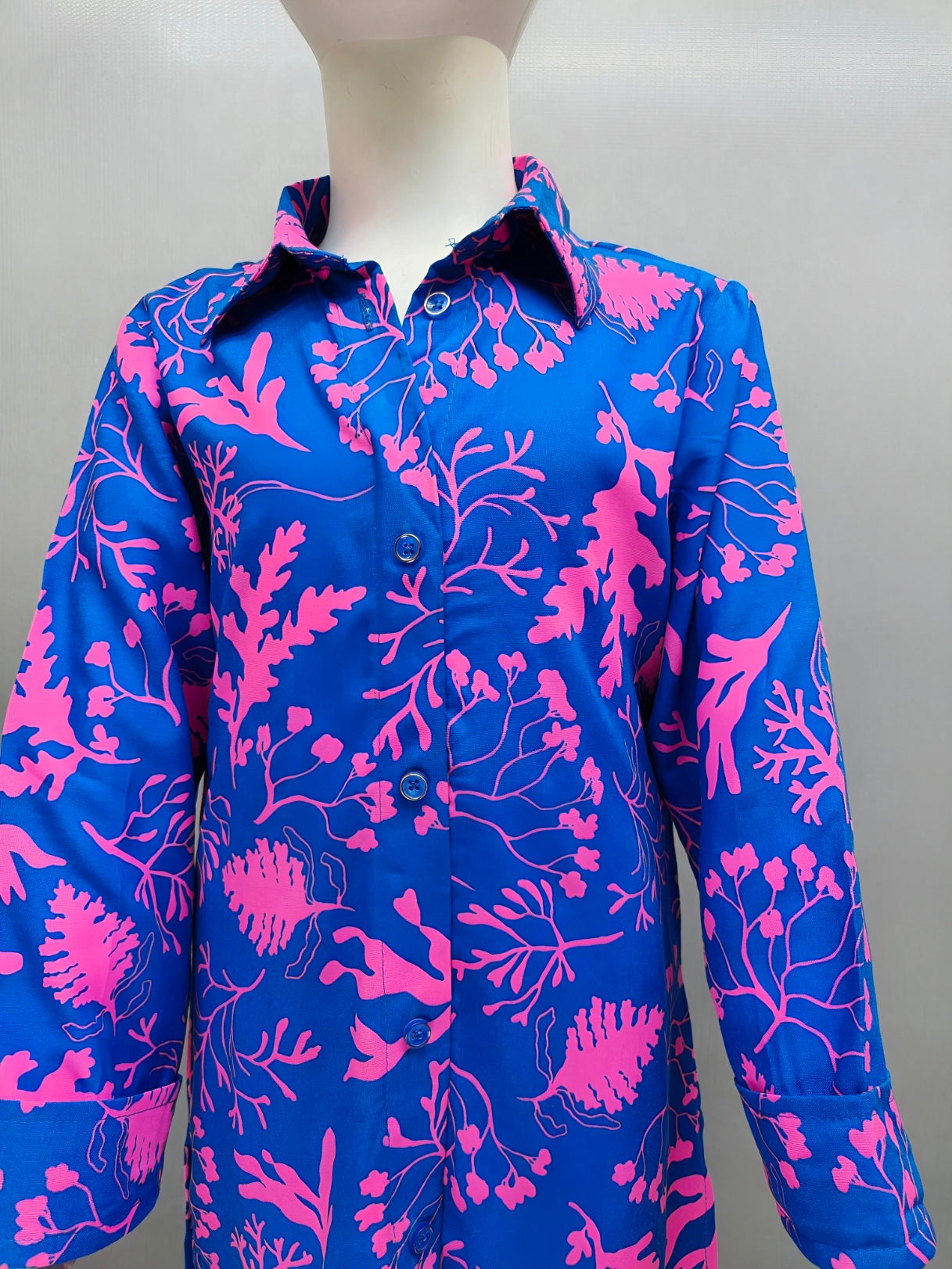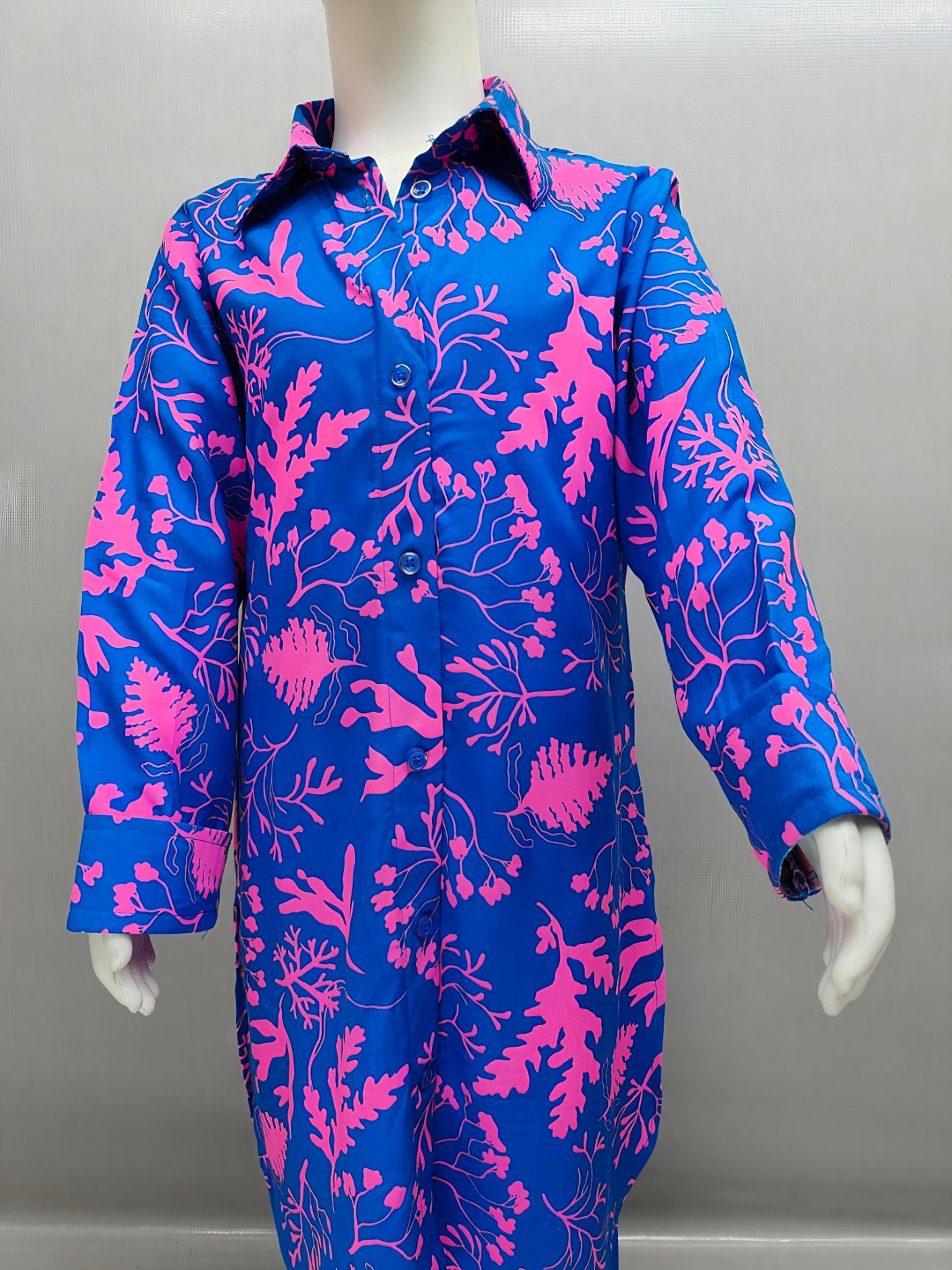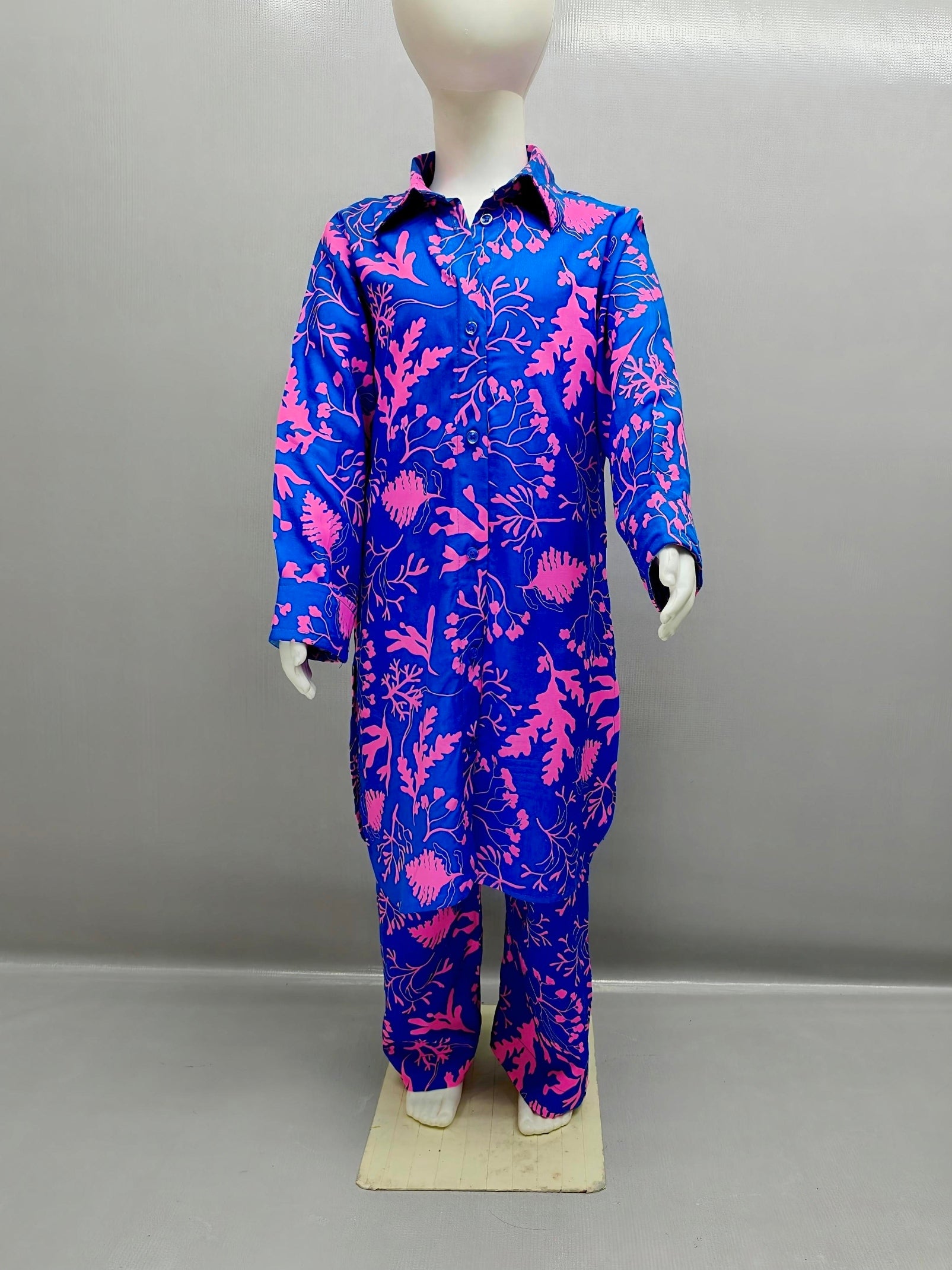 Make your little star shine bright in this eye-catching Coral Bloom Co-ord Set! The vibrant combination of royal blue and hot pink with an all-over floral print is perfect for playful yet polished looks. 💖🌿